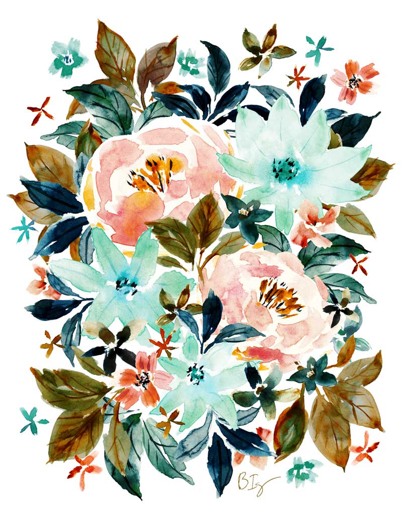 A lil witchy, with chill minty blue-green, and also balanced with the warmth of peach and chestnutty brown.