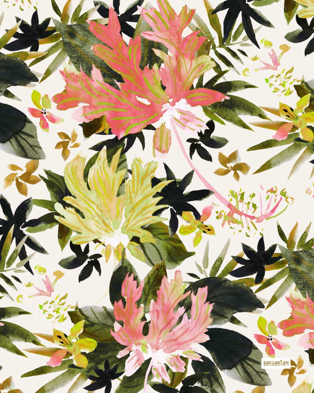Shop WILD RETREAT SHOP FABRIC + WALLPAPER - LARGE SCALE SHOP FABRIC - SMALL SCALE SHOP THE FABRIC + WALLPAPER COLLECTION @ SPOONFLOWER SHOP THIS ART @ SOCIETY6 SHOP THE LUSH AF FABRIC COLLECTION @ ZAZZLE SHOP THE LUSH AF HOME COLLECTION @ SOCIETY6 Spider hibiscus poppin’ off with fluttery petals in bright hues of pink, green and yellow. Ahh they make me feel like I’ve gone on vacation in my mind. Always a welcome retreat. feminine- Hibiscus- Pink- pretty- schizopetalus- spider hibiscus- TROPICAL- watercolor