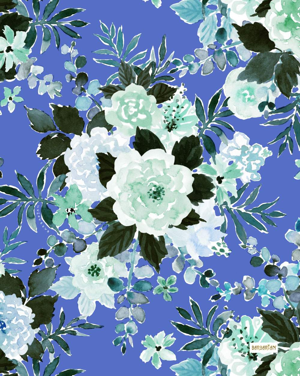 This floral encourages growth and expansion in a glorious combo of periwinkle blue, aqua and deep green.