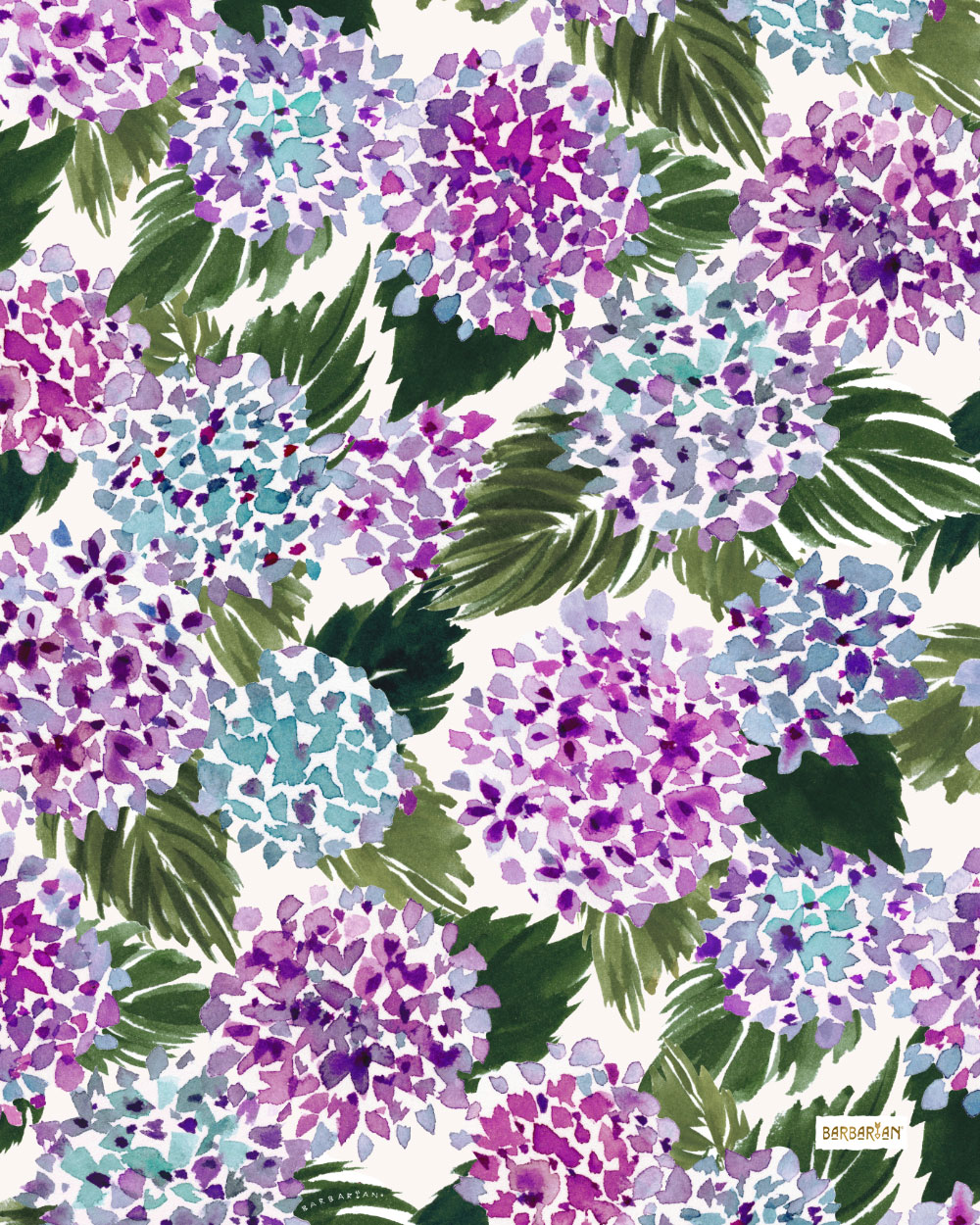Hydrangeas as a motif have always had a particular gramma vibe to me. So for this one I challenged myself to ignore my silly bias and make BARBARIAN hydrangeas. The way a badass empowered woman would want them — of any amazing age. Wilder and bolder. And like zero shade to any human that loves a softer hydrangea. That’s still super cool! Just wanted to try out a bit bolder version :)