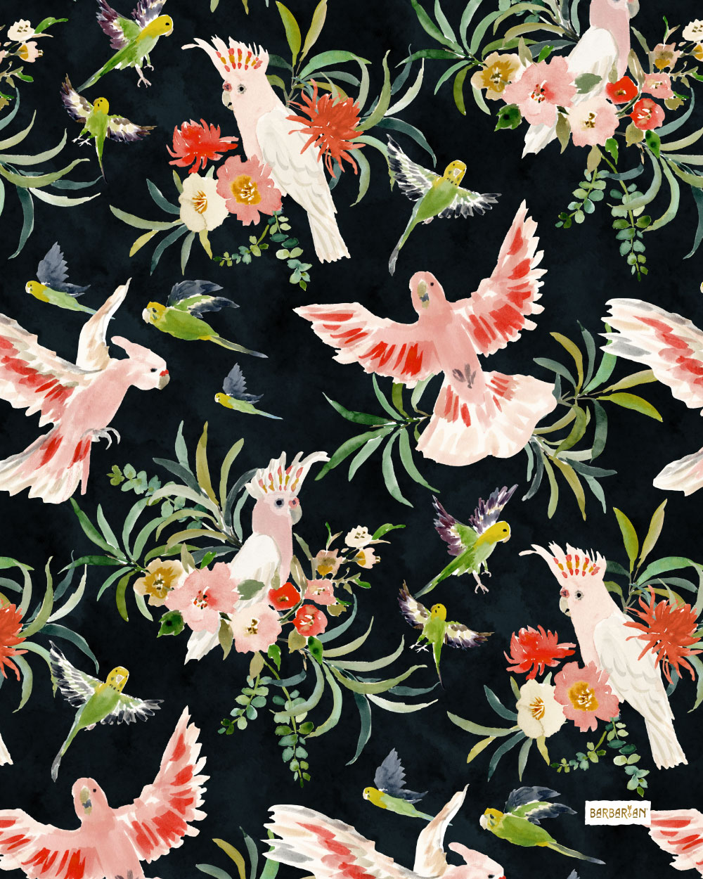 Shop COCKATOO CRAZE SHOP LUXE LEGGINGS SHOP SPOONFLOWER FABRIC SHOP SPOONFLOWER FABRIC - LARGE SCALE This print features cockatoos and budgies in an abundant eucalyptus world, perfect to manifest Australian vibes. ANIMAL- australia- bird- budgie- cockatoo- eucalyptus- FLORAL- parrot