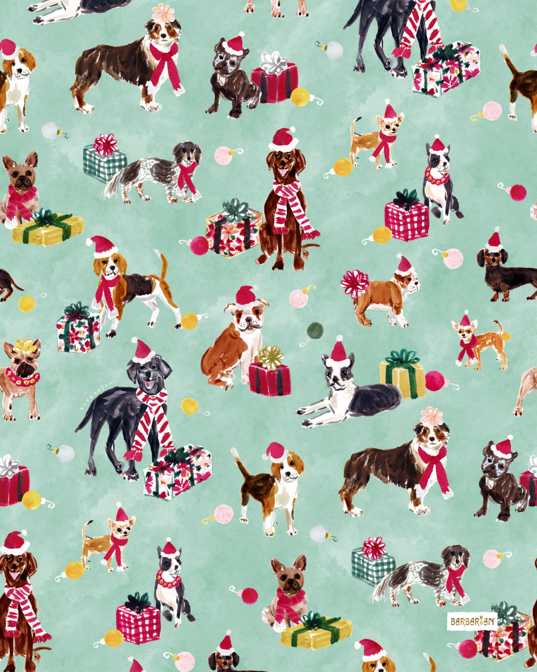Shop CHRISTMAS DOG CUTENESS SHOP WRAPPING PAPER SHEETS SHOP WRAPPING PAPER ROLL SHOP TISSUE PAPER - CREAM SHOP TISSUE PAPER - MINT SHOP SPOONFLOWER FABRIC + MORE - AQUA SHOP SPOONFLOWER FABRIC + MORE - EMERALD SHOP SPOONFLOWER FABRIC + MORE - CREAM All the major dog players in this dog print! Getting into everything, naturally. Ready to catch that rolled up ball of wrapping paper and to open all the gifts with you. ANIMAL- boston terrier- canine- Christmas- christmas animal- christmas dog- christmas dogs- cute- dachshund- Dog- FRENCHIE- HOLIDAY- labrador- puppy- wrapping paper
