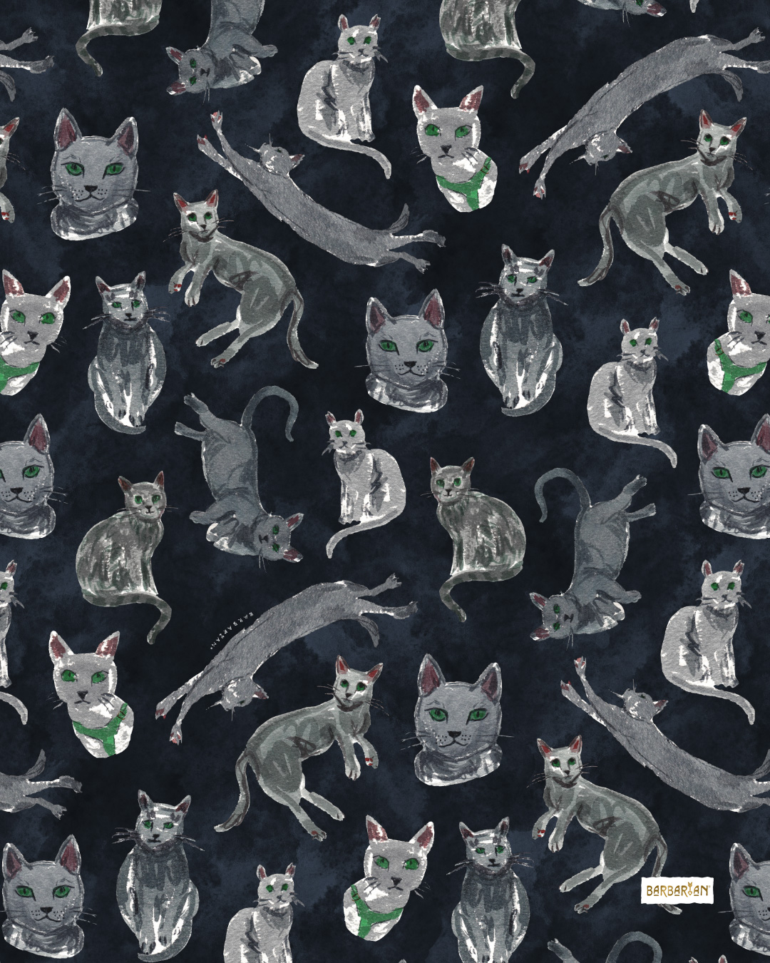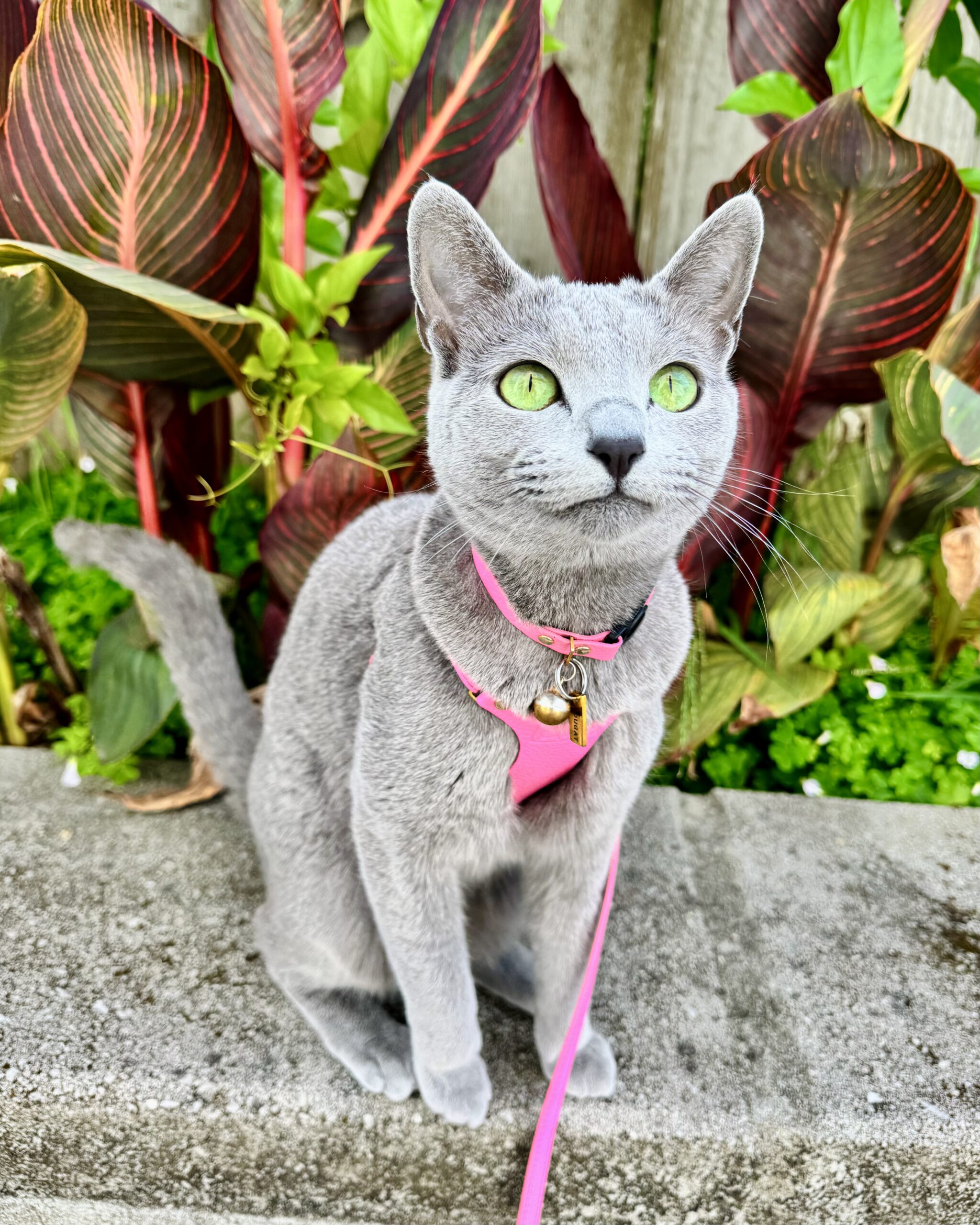 She is a Russian Blue — and boasts the amazing green eyes that RB’s are known for.