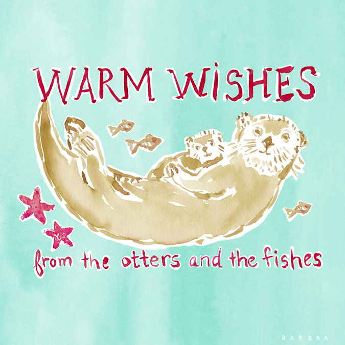 WARM WISHES Holiday Sea Otter Print